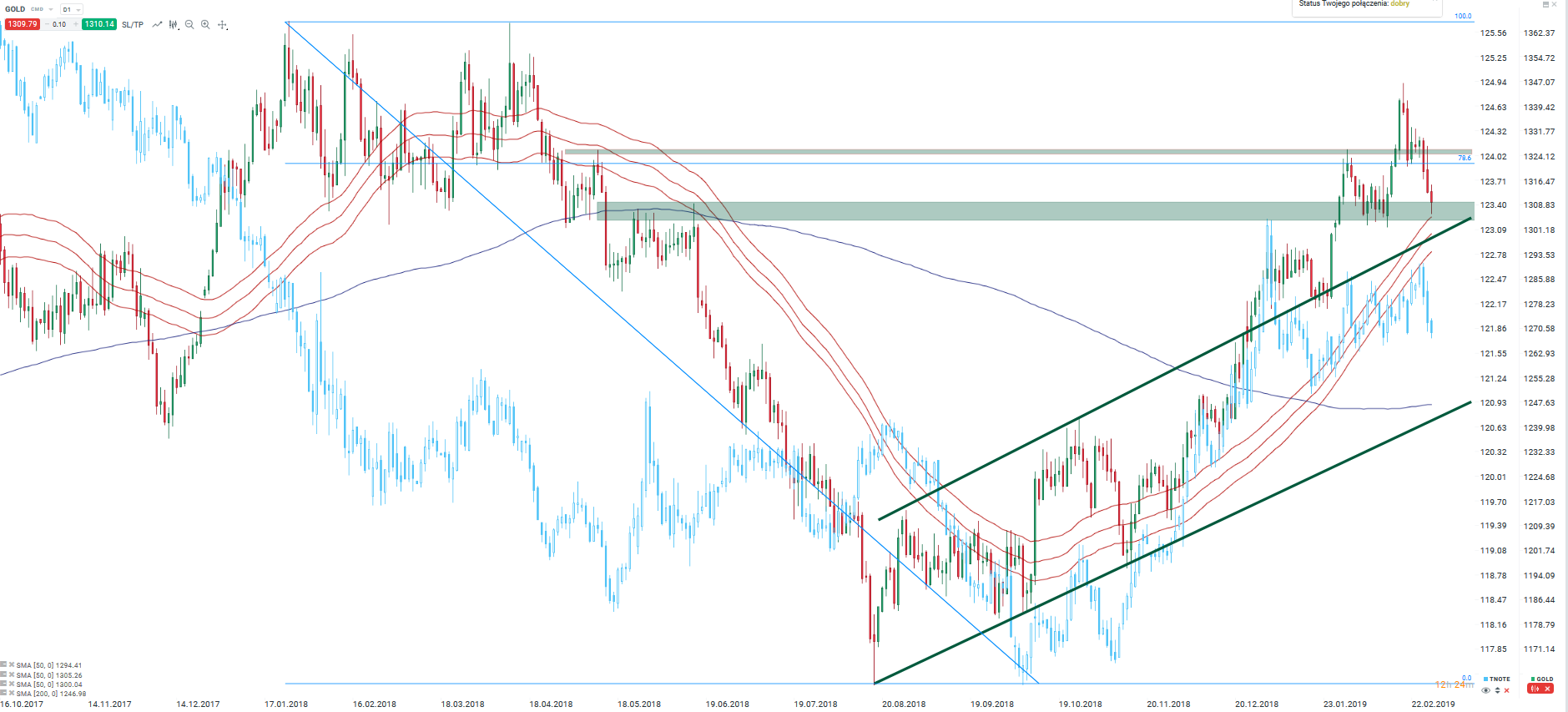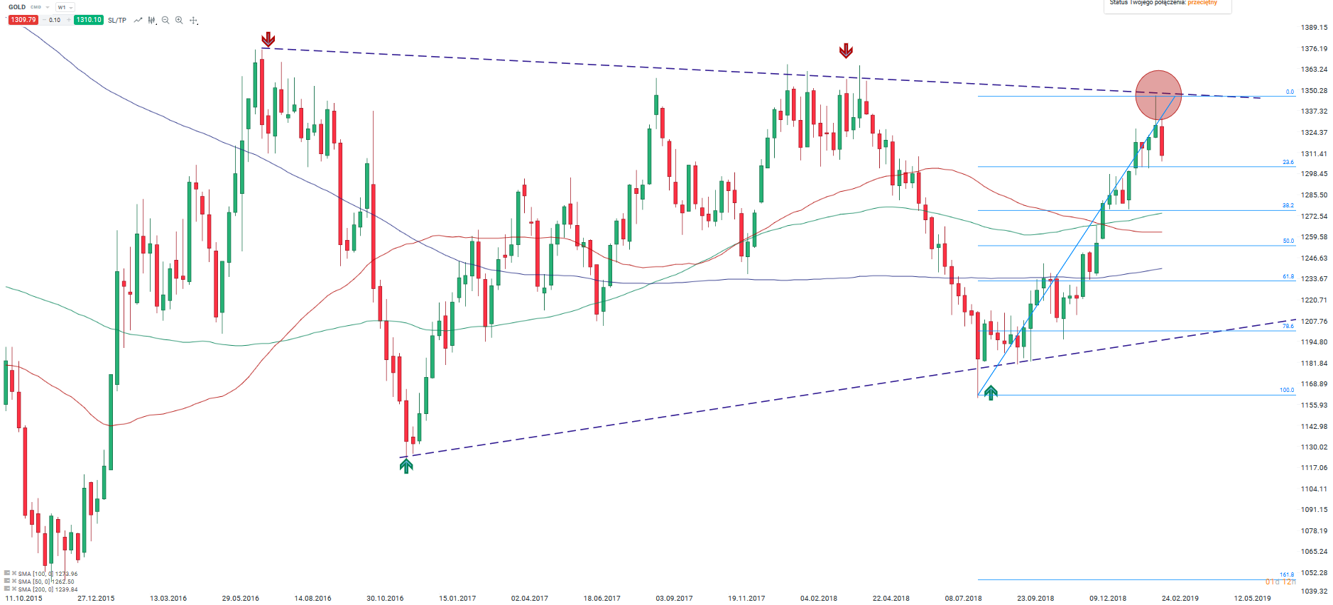 - Ceny zlata se odrazily na nižší hodnoty od horní hranice širokého konsolidačního pásma