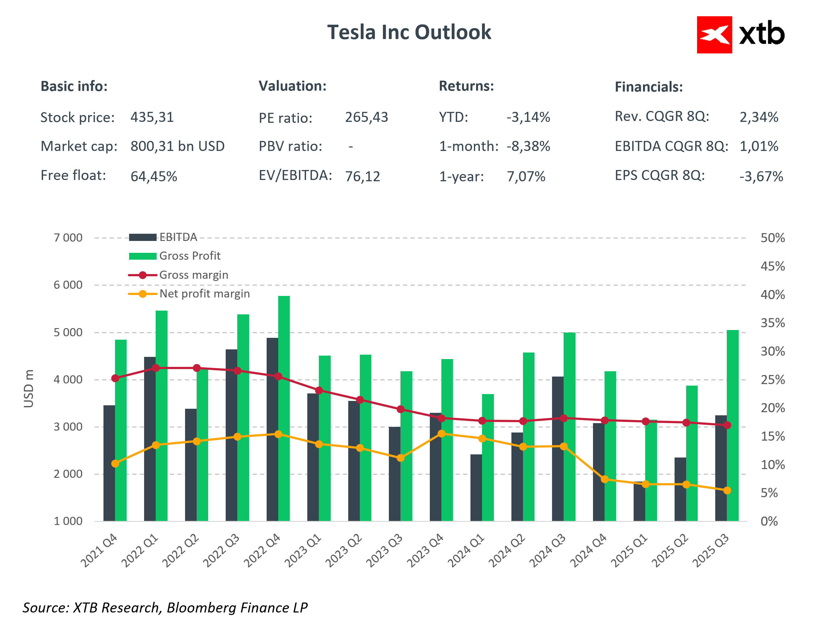 Významná časť investorov prestala sledovať finančné ukazovatele či tvrdé dáta. Existuje veľká skupina akcionárov, ktorí sa primárne zameriavajú na vyhlásenia ohľadom vývoja FSD (plne autonómneho riadenia) a tzv. „robotaxi“. Tesla bude mať veľké problémy naplniť aj tieto konzervatívne očakávania ziskovosti. Ak však spoločnosť predstaví sľubné ukazovatele súvisiace s FSD a robotaxi, môže si dočasne udržať súčasné ocenenie – alebo dokonca zaznamenať rast. Naopak, neprítomnosť týchto signálov by mohla po výsledkoch viesť k výraznému výpredaju.