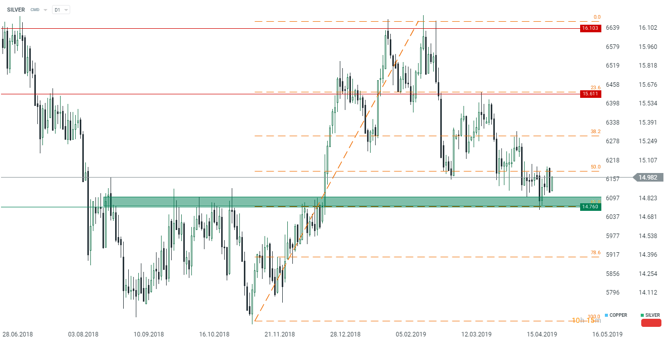 Ceny stříbra se v poslední době přiblížily důležité hladině poptávky. Tato zóna v minulosti podpořila býky, takže bychom se toho mohli dočkat i tentokrát. Navíc tato oblast je dále podepřena úrovní 38,2 % retracementu posledního vzestupu. Musíme ovšem počítat také s další překážkou, a to ve formě 50 % Fibo retracementu stejného pohybu. Pokud by se tuto úroveň podařilo prorazit, tak se můžeme dočkat růstu až k 15,60 nebo až k 16,10 dolarům. Je také dobré mít na paměti, že ceny stříbra a mědi korelují a jsou závislé na vývoji ekonomické aktivity v Číně. Z tohoto pohledu je zajímavá divergence, která se začala formovat v únoru a dosud nebyla uzavřena. Z našeho pohledu nevidíme aktuálně vyšší pravděpodobnost poklesu ekonomické aktivity v Číně, takže prostor pro pokles cen stříbra by měl být omezený.
