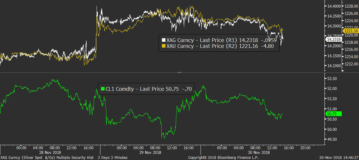 Podobně jsou na tom i další měny, jako libra, japonský jen, nebo komoditní AUD a NZD, které dnes jen oscilují v okolí včerejšího close. Zejména pro AUD a NZD přitom může být výstup z víkendové schůzku amerického a čínského prezidenta klíčový, takže by si obchodníci na těchto měnách měli dát velký pozor na případné držení pozic přes víkend.