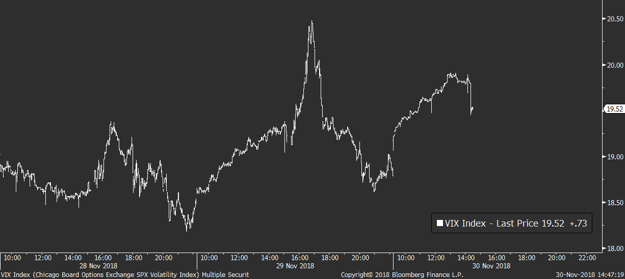 Přestože si akcie své zisky z tohoto týdne do značné míry udržují, úroveň rizikových přirážek je stále nepříjemně zvýšená. Dnes se americký VIX dokonce znovu přibližuje ke hranici 20b., což by obchodníkům mělo připomínat, že další vlna silných výprodejů může přijít téměř kdykoliv. Obzvláště pak v případě, pokud by víkendová schůzka prezidentů skončila krachem, jak předpokládají například analytici Goldman Sachs.