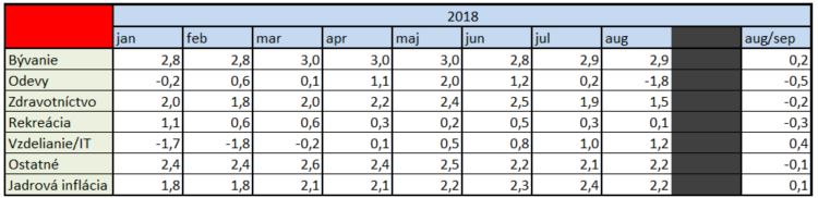 Tohtoročný vývoj jednotlivých komponentov jadrovej inflácie