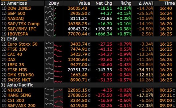 Negatívne správy z eurozóny a aj zo sveta stiahli európske akcie do mínusu. DAX popoludní stráca zhruba trištvrte percenta. Americké akcie sú mierne v pluse. Pomohli im aj lepšie mäkké indikátory, pozitívne prekvapila spotrebiteľská dôvera z dielne University of Michigan a aj index výrobnej dôvery z regiónu Chicaga.