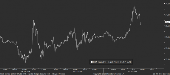 Na komoditním trhu se dnes díky stabilnímu dolaru cena drahých kovů příliš nemění. Růstu se ale naopak dočkala cena ropy, která tak dál nesměle pokračuje v likvidaci ztrát z minulých týdnů, když se v případě severomořské ropy Brent krátce vyhoupla až nad hranici 74 dolarů za barel.