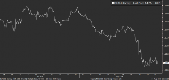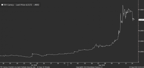 Při absenci významných fundamentů je pak také dnes Turecko tématem číslo jedna. Prezident Erdogan svolal dopoledne tiskovou konferenci, kde oznámil, že se jeho země nenechá šikanovat Spojenými státy a ze svých pozic neustoupí (amerického pastora nepropustí). Zároveň uvedl, že jako odpověď na americké sankce na ocel a hliník bude Turecko bojkotovat dovoz americké spotřební elektroniky v čele s mobilními telefony iPhone. TRY ale dnes část svých dřívějších ztrát i tak likviduje, když reaguje na pondělní prohlášení centrální banky, která je dle svých slov připravena přijmout všechny nezbytné kroky k zastavení výprodejů na TRY. Dramatické zvýšení sazeb ale zdá se mezi těmito kroky stále není a dokud se tak nestane, je TRY i nadále náchylná k dalším silným výprodejům.