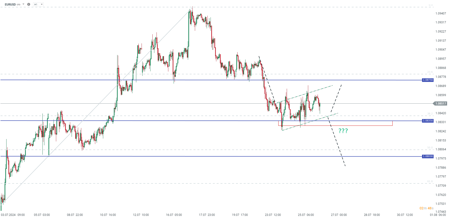 Ako vidieť, očakávania trhu poukazujú na veľmi optimistickú správu, ktorá by mala podporiť holubičí vývoj na trhu. Treba však poznamenať, že po veľmi dobrej májovej správe môže dôjsť k revízii niektorých zložiek a k odrazu v júni na mesačnej báze. Preto existuje možnosť negatívneho prekvapenia. Napriek tomu by dnešné čítanie nemalo zmeniť smerovanie Fedu, ak nedôjde k výraznejšiemu prekvapeniu. Očakáva sa, že Fed na budúci týždeň naznačí pripravenosť na zníženie sadzieb, ale pravdepodobne to explicitne nenaznačí. Powell s najväčšou pravdepodobnosťou využije príležitosť jasne signalizovať zníženie sadzieb počas ekonomického sympózia v Jackson Hole v auguste.