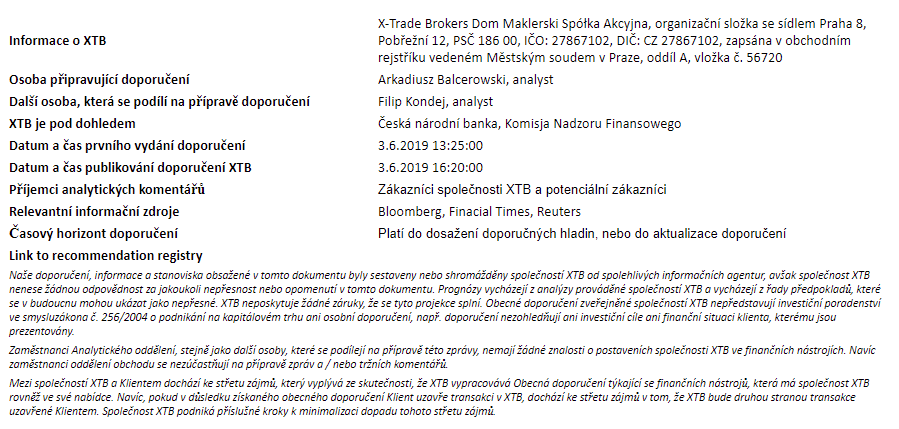 Tento materiál je marketingovou komunikáciou v zmysle čl. 24 ods. 3 smernice Európskeho parlamentu a Rady 2014/65/EÚ z 15. mája 2014 o trhoch s finančnými nástrojmi, ktorou sa mení smernica 2002/92/ES a smernica 2011/61/EÚ (MiFID II). Marketingová komunikácia nie je investičným odporúčaním ani informáciou odporúčajúcou alebo navrhujúcou investičnú stratégiu v zmysle nariadenia Európskeho parlamentu a Rady (EÚ) č. 596/2014 zo 16. apríla 2014 o zneužívaní trhu (nariadenie o zneužívaní trhu) a o zrušení smernice Európskeho parlamentu a Rady 2003/6/ES a smerníc Komisie 2003/124/ES, 2003/125/ES a 2004/72/ES a delegovaného nariadenia Komisie (EÚ) 2016/958 z 9. marca 2016, ktorým sa dopĺňa nariadenie Európskeho parlamentu a Rady (EÚ) č. 596/2014, pokiaľ ide o regulačné technické predpisy upravujúce technické opatrenia na objektívnu prezentáciu investičných odporúčaní alebo iných informácií, ktorými sa odporúča alebo navrhuje investičná stratégia, a na zverejňovanie osobitných záujmov alebo uvádzanie konfliktov záujmov v zmysle zákona č. 566/2001 Z. z. o cenných papieroch a investičných službách. Marketingová komunikácia je pripravená s najvyššou starostlivosťou, objektivitou, prezentuje fakty známe autorovi k dátumu prípravy a neobsahuje žiadne hodnotiace prvky. Marketingová komunikácia je pripravená bez zohľadnenia potrieb klienta, jeho individuálnej finančnej situácie a nijakým spôsobom nepredstavuje investičnú stratégiu. Marketingová komunikácia nepredstavuje ponuku na predaj, ponuku, predplatné, výzvu na nákup, reklamu alebo propagáciu akýchkoľvek finančných nástrojov. XTB S.A. organizačná zložka nezodpovedá za žiadne kroky alebo opomenutia klienta, najmä za nadobudnutie alebo predaj finančných nástrojov. XTB nezodpovedá za žiadnu stratu alebo škodu, vrátane, bez obmedzenia, akejkoľvek straty, ktorá môže vzniknúť priamo alebo nepriamo, spôsobená na základe informácií obsiahnutých v tejto marketingovej komunikácii. V prípade, že marketingová komunikácia obsahuje akékoľvek informácie o akýchkoľvek výsledkoch týkajúcich sa finančných nástrojov v nej uvedených, nepredstavujú žiadnu záruku ani prognózu budúcich výsledkov. Minulá výkonnosť nemusí nevyhnutne naznačovať budúce výsledky a každá osoba konajúca na základe týchto informácií tak robí výlučne na vlastné riziko.