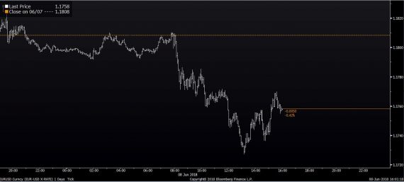 Hneď po zverejnení tohto čísla sa začal pokles eura, ktoré bolo predtým poháňané optimistickými vyjadreniami viacerých členov ECB zo stredy. Dôvera v schopnosť ECB zvyšovať úročenie po ďalších signáloch spomalenia rastu v eurozóne ustúpila. Dokumentuje to aj pokles výnosov z dlhopisov krajín eurozóny. Teda tých bezpečných, výnosy z talianskych dlhopisov mierne rastú. EURUSD sa vrátil pod úroveň 1,18 a popoludní sa obchoduje okolo úrovne 1,175.