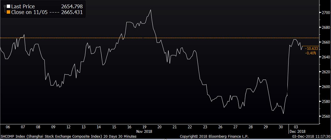 Víkendové stretnutie amerického prezidenta Trump s čínskym Xi Jinpingom prinieslo „moratórium“ na zavádzanie ciel (aj na tie, ktoré už boli ohlásené) po dobu 90 dní, ktoré majú krajiny na dohodu ohľadom vyriešenia problémov vo vzájomných obchodných vzťahoch. Tie sa týkajú rešpektovania duševného vlastníctva Čínou, obmedzeného prístupu amerických firiem na čínsky trh, či vysokého obchodného deficitu USA. Ohľadom tretieho bodu došlo k akýmsi vyhláseniam, ktoré by mohli obchodný deficit jemne okresať – Čína sľúbila vyššie nákupy komodít z USA a taktisto aj zrušenie 40-percentného cla na automobily. V ďalších dvoch oblastiach bude dohoda oveľa komplikovanejšia a za 90 dní sa môže stihnúť maximálne tak nejaké spoločné vyhlásenie, že sa na týchto témach bude pracovať.