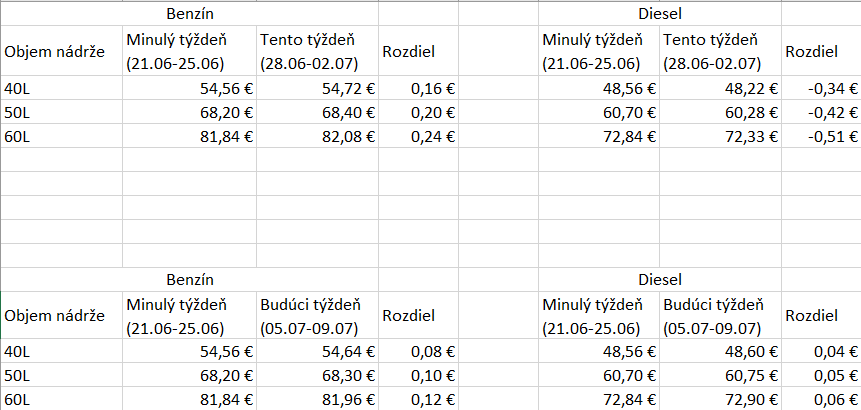 Analytik spoločnosti X-Trade Brokers, Lukáš Lipovský, na základe vývoja cien PHM v Rotterdame očakáva, že priemerné ceny benzínu a dieslu by mali zaznamenať v nasledujúcich dvoch až troch týždňoch nárast od jedného do dvoch centov za liter oproti priemerným cenám z predchádzajúceho týždňa. Priemerné ceny benzínu zaznamenali počas minulého týždňa nárast o 0,8 centu ta liter, pričom priemerné ceny dieslu vzrástli o 0,9 centu za liter oprosti priemerným cenám z predchádzajúceho týždňa.