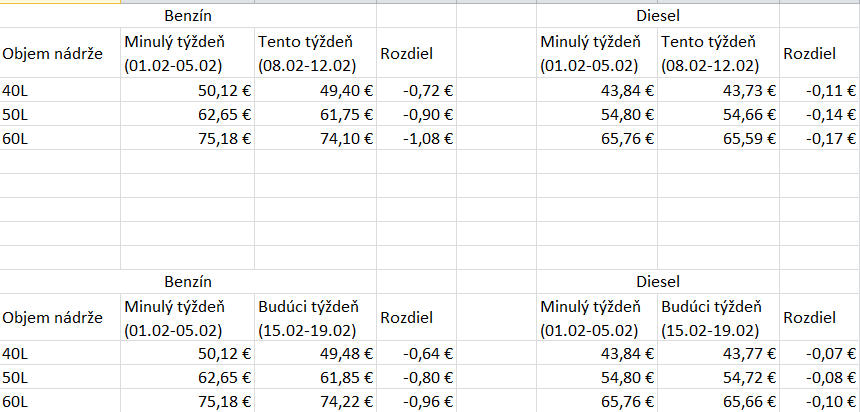 Analytik spoločnosti X-Trade Brokers, Lukáš Lipovský, na základe vývoja cien PHM v Rotterdame očakáva, že ceny benzínu a dieslu by mali zaznamenať v priebehu dvoch až troch týždňov nárast od troch do piatich centov za liter oproti priemerným cenám z predchádzajúceho týždňa. Priemerné ceny benzínu na Slovensku sa behom minulého zvýšili o 1,5 centu za liter, pričom priemerné ceny dieslu vzrástli o 0,1 centu za liter oproti priemerný cenám z predchádzajúceho týždňa.