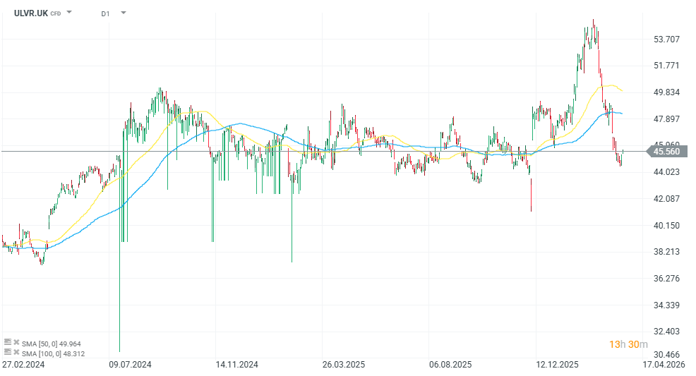 Hoci je potravinárska divízia Unileveru biznisom s vyššou maržovosťou, rast tržieb zaostáva za divíziami osobnej starostlivosti a beauty a brzdí ambície firmy zvýšiť v blízkom období celkové tržby skupiny o 4 až 6 %. V roku 2025 dosiahli celkové tržby Unileveru 50,5 miliardy eur, pričom medziročne klesli. Firma tak prechádza obdobím slabšieho rastu a stagnácie, keď sa jej nedarí výraznejšie zrýchliť celkovú výkonnosť. To sa prejavuje aj na vývoji ceny akcií, ktoré za posledných 5 rokov vykazujú len slabú výkonnosť okolo 6 %, zatiaľ čo za posledný rok titul stratil viac ako 7 %. Stagnujúci rast navyše nedokáže plne vykompenzovať ani dividendový výnos, ktorý je v súčasnosti mierne pod úrovňou 4 %.