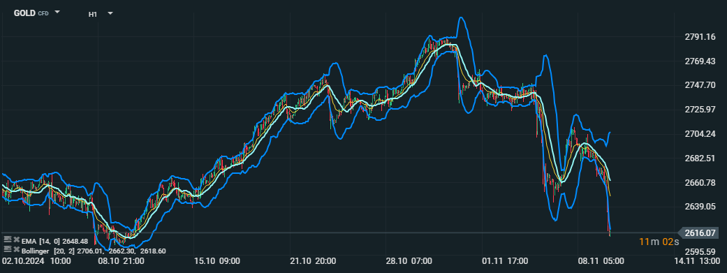 Zlato klesá k úrovni 2616 USD za trojskú uncu po prudkom poklese na pozadí posilňujúceho dolára a rastúcich výnosov z amerických dlhopisov. Zdroj: xStation5