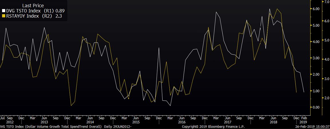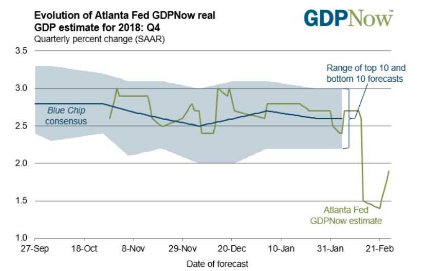 Stále ešte nie je úplne jasné, či to je efekt shutdownu, ktorý ovplyvnil spotrebu domácností predovšetkým v januári (mnohí nedostali výplaty), alebo dlhodobejší jav. V neprospech druhej interpretácie hovorí stále vysoká spotrebiteľská dôvera.