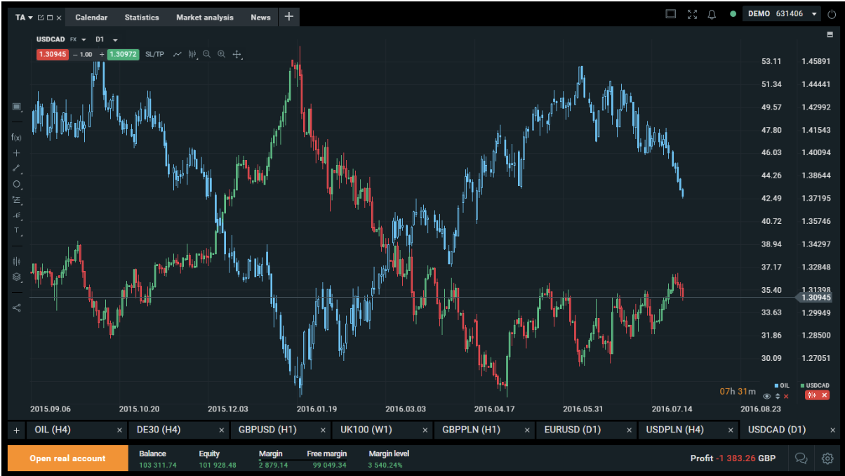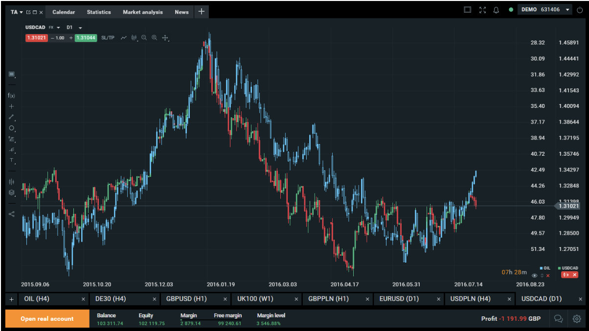 แท่งสีเขียวและสีแดงแสดงถึง Loonie ในขณะที่แท่งสีขาวและสีน้ำเงินแสดงถึงน้ำมัน ดังที่คุณเห็น USDCAD มีความสัมพันธ์แบบผกผันกับน้ำมัน ซึ่งหมายความว่าโดยทั่วไปแล้ว ราคาน้ำมันที่สูงขึ้นจะหมายถึงอัตรา USDCAD ที่ลดลง อย่างไรก็ตาม หากเราพลิกแผนภูมิน้ำมัน ตลาดทั้งสองจะทำงานคล้ายกันมาก