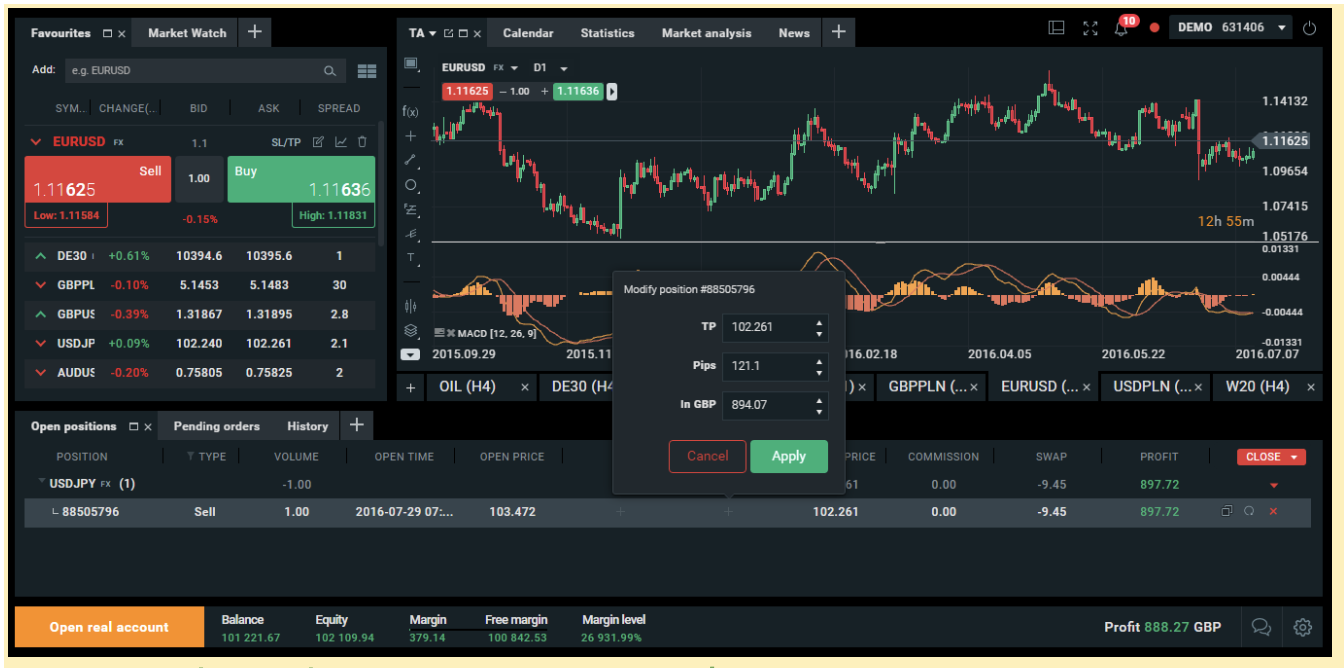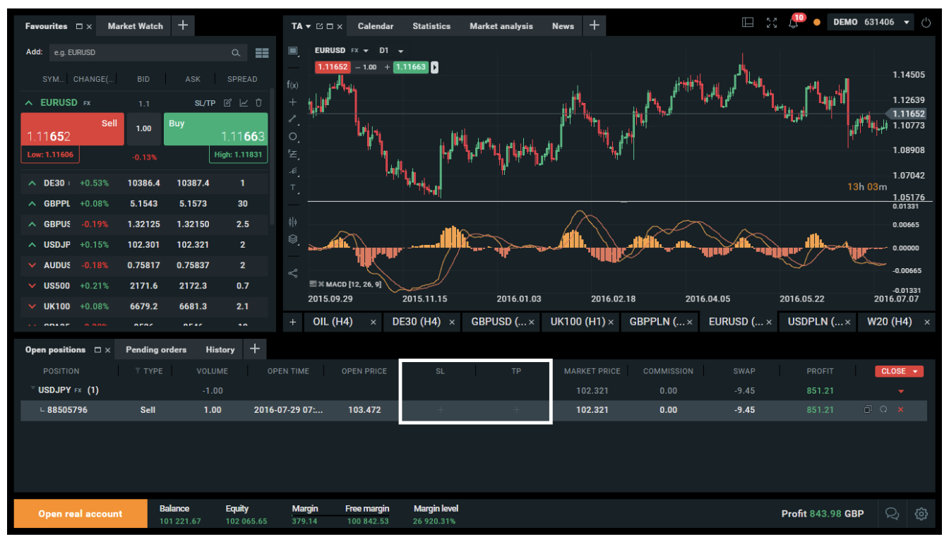 มีหลายวิธีการในการติดตั้งคำสั่ง Stop loss และ Take profit ใน xStation แต่วิธีการที่ละเอียดที่สุดสามารถทำได้ในหน้าต่างคำสั่งโดยใช้เครื่องมือคำนวณของนักลงทุน