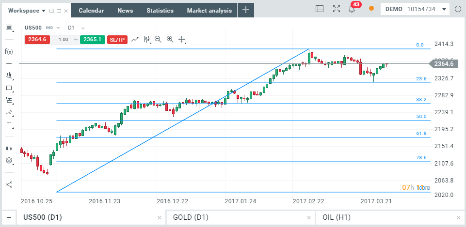 เป็นเครื่องมือที่ทรงพลังและได้รับความนิยมซึ่งเน้นระดับการย้อนกลับที่อาจเกิดขึ้นของการเคลื่อนไหวของราคาเดิมของตลาด Fibonacci retracement ใช้เส้นแนวนอนเพื่อระบุพื้นที่แนวรับหรือแนวต้านที่ระดับสำคัญ