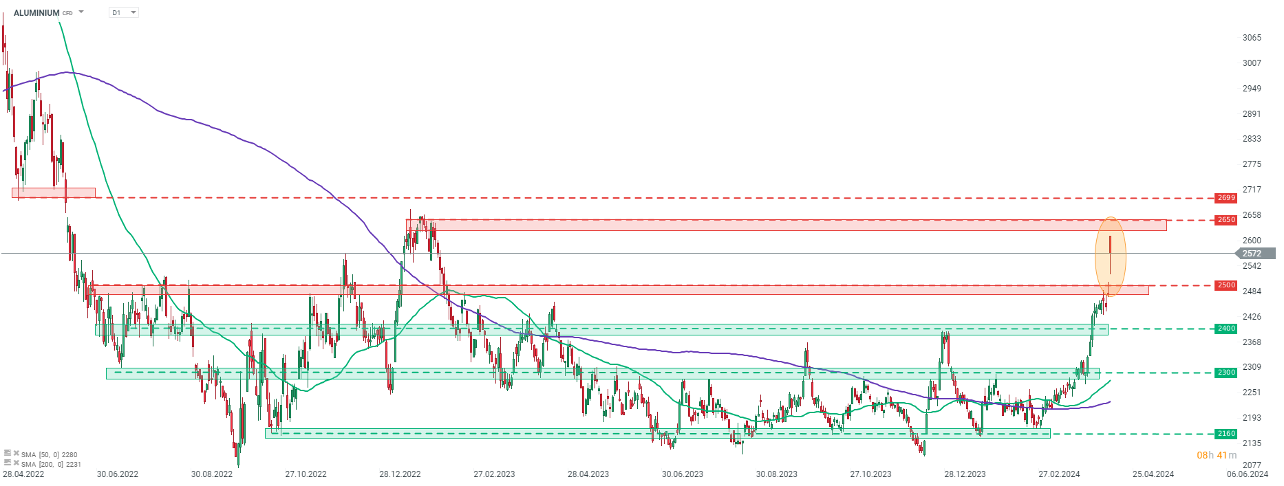 Taking a look at ALUMINIUM chart at D1 interval, we can see that the metal launched new week's trading with a big bullish price gap and jumped to the highest level since early-February 2023. Part of the gain has been erased already but price continues to trade around 4% higher on the day. A key near-term resistance zone can be found in the $2,650 area, marked with local high from early-2023. COPPER trades 1.4% higher, while NICKEL jumps 2.1%.