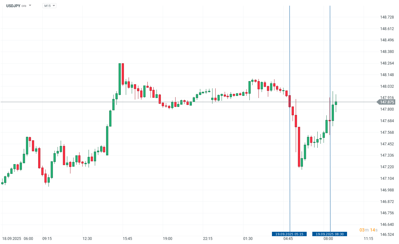 หลังการตัดสินใจ เงินเยน (JPY) แข็งค่าขึ้นชัดเจน ขณะที่ดัชนีหุ้นญี่ปุ่นร่วง ตลาดเปลี่ยนโหมดสู่ risk-off โดย JP225 ลดลงถึง 1.90%