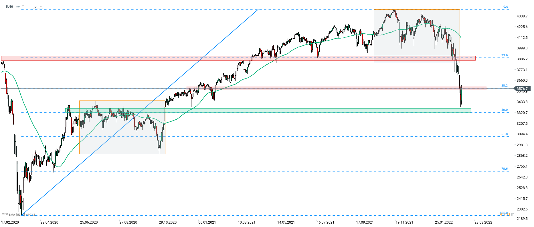 In spite of a rather poor Wall Street and Asian session for risk trades, European risk assets gained following the launch of a cash session on the Old Continent today. Sentiment improved on news of a possible joint bond sale by EU countries. According to media reports, EU will discuss this week a possibility of launching a joint bond sale in order to finance energy transformation as well as defense spending. Proposal will be discussed during a summit in France that will be held on March 10-11, 2022. Funds will be distributed as preferential loans.