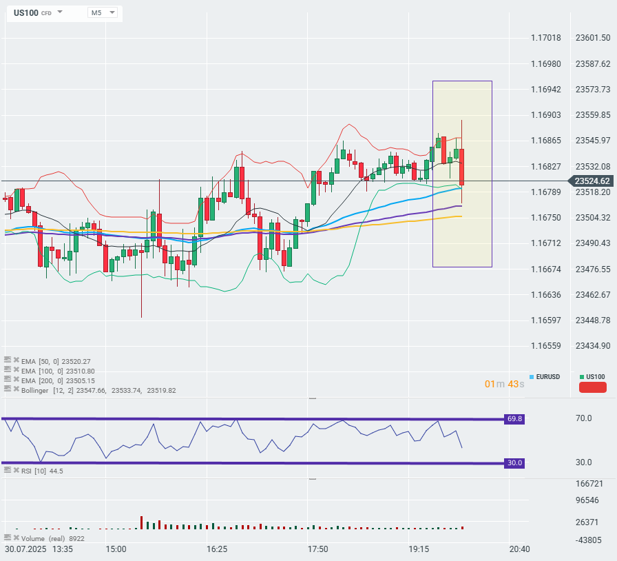 เฟดคงอัตราดอกเบี้ยที่ 4.5% ตามคาดการณ์ EURUSD ปรับขึ้นเล็กน้อยหลังประกาศ ขณะที่ US100 ปรับตัวลดลง