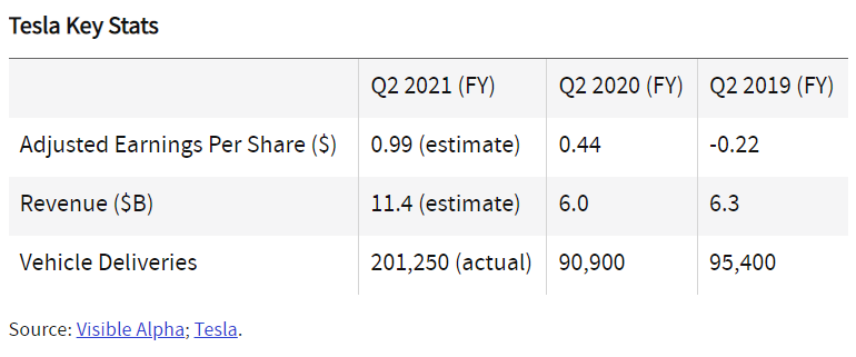 As was the case in the past, investors will primarily focus on the vehicle deliveries figures as they account for the majority of the company's earnings results. The company's primary business is making electric cars and it needs to continue expanding production in order to grow revenue and profits, however this may be difficult in the future due to rising competition mainly from Volkswagen. Although the company already reported delivery figures earlier this month, these numbers are always slightly adjusted during earning results. Total deliveries for Q2 FY 2021 came in at 201,250, up 122.0% compared to the same quarter a year-ago. Any significant deviations from these figures, could lead to significant price movements. Also investors may want to hear more updates regarding two gigafactories in Berlin and Texas and their impact on the future production levels.