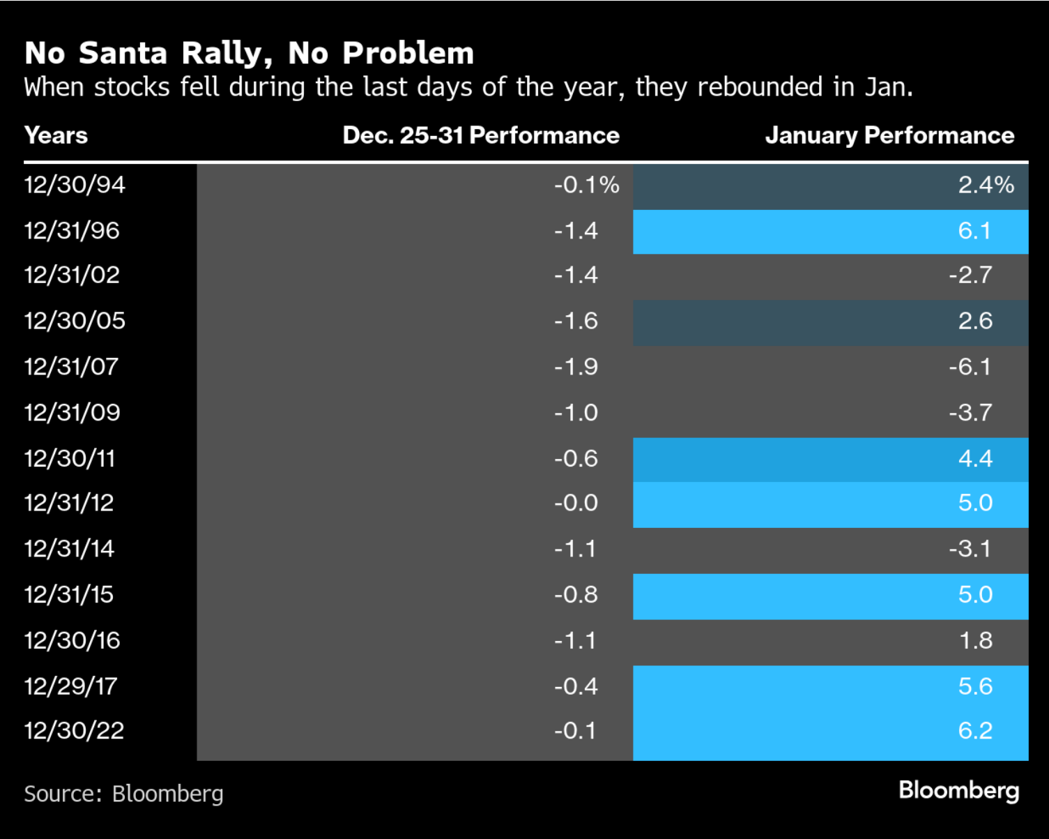 The current selloff has effectively erased most of December's gains, challenging hopes for a traditional Santa Claus rally in the final trading days of 2023. However, historical patterns suggest the potential for a recovery in January, particularly once holiday-related liquidity constraints ease.