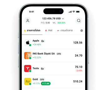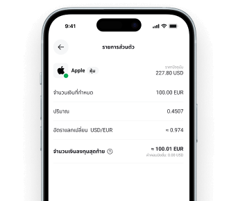 *ตราสารทางการเงินที่เรานำเสนอมีความเสี่ยง เศษหุ้น (FS) เป็นผลิตภัณฑ์ที่ให้บริการจาก XTB แสดงถึงการเป็นเจ้าของหุ้นบางส่วนหรือ ETF เศษหุ้นไม่ใช่ผลิตภัณฑ์ทางการเงินอิสระ สิทธิของผู้ถือหุ้นอาจถูกจำกัด เรียนรู้เพิ่มเติมเกี่ยวกับผลิตภัณฑ์ได้ที่