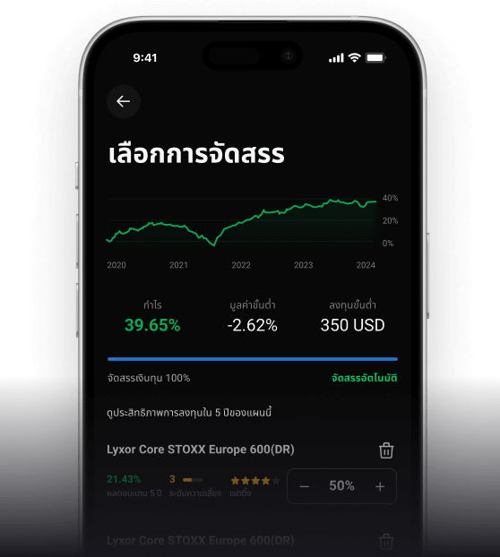 ค้นพบวิธีที่ชาญฉลาดกว่าในการลงทุน ETF แบบพาสซีฟ ส่วนต่อประสานที่ใช้งานง่ายช่วยให้คุณสร้างแผนการลงทุนของคุณเองได้อย่างง่ายดาย และการชำระเงินอัตโนมัติช่วยให้คุณสามารถเติมเงินได้เป็นประจำ