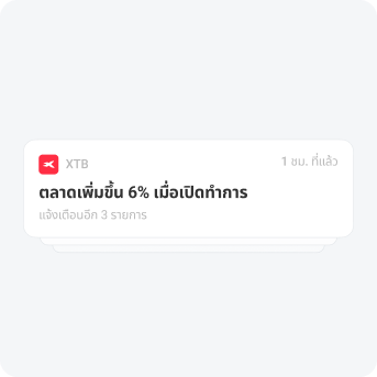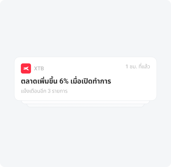 ผลิตภัณฑ์ทางการเงินที่เราให้บริการมีความเสี่ยง เศษหุ้น (Fractional Shares) เป็นผลิตภัณฑ์ที่ให้บริการจาก XTB แสดงถึงการเป็นเจ้าของหุ้นบางส่วนหรือ ETF เศษหุ้นไม่ใช่ผลิตภัณฑ์ทางการเงินอิสระ สิทธิของผู้ถือหุ้นอาจถูกจำกัด
