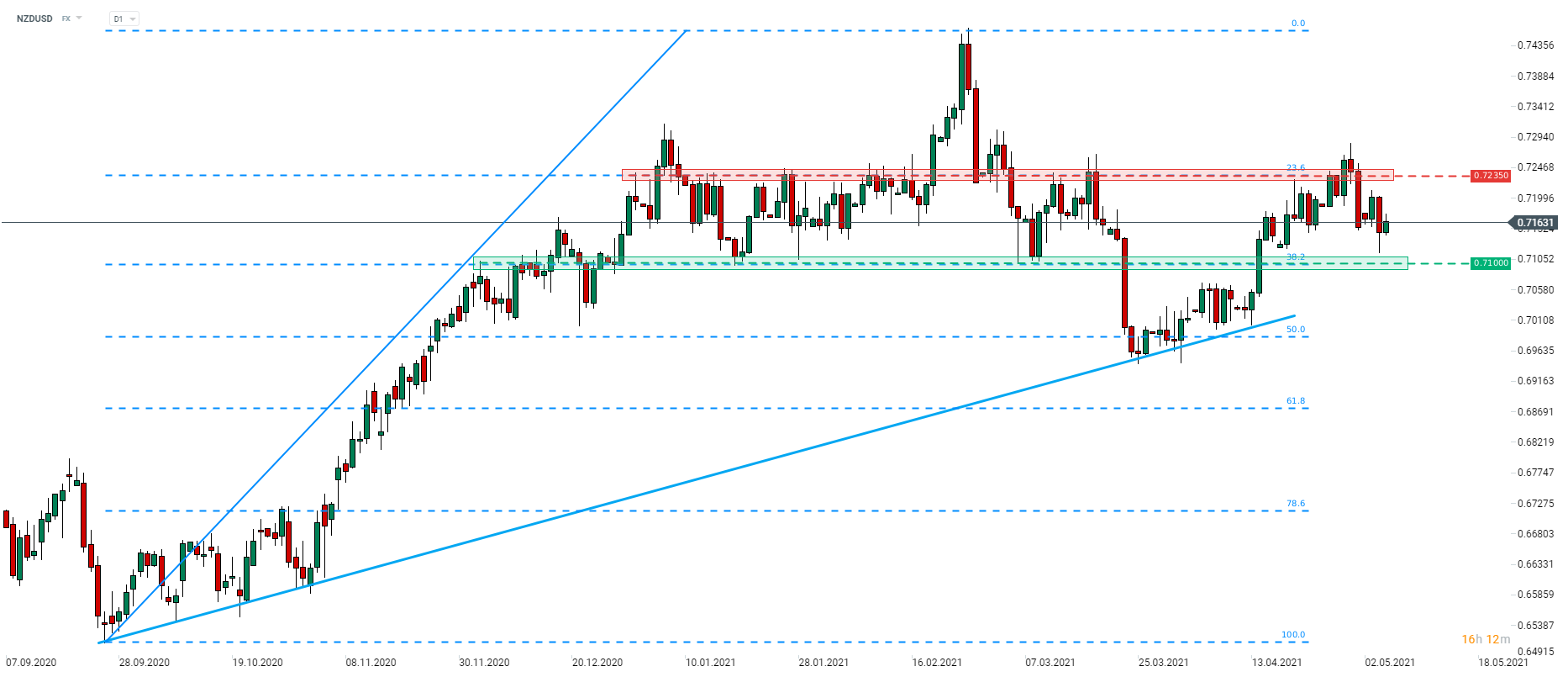 NZDUSD đã trải qua một đợt bán tháo vào hôm qua. Mức thấp hàng ngày giảm và nằm trên phạm vi giao dịch gần mức hỗ trợ 0.7100 và cặp tiền đã bắt đầu khôi phục vào sau đó. Đà tăng được tiếp tục trong hôm nay nhờ vào các dữ liệu mạnh mẽ. Mức kháng cự ngắn hạn sẽ nằm ở 0.7235. Nguồn: xStation5
