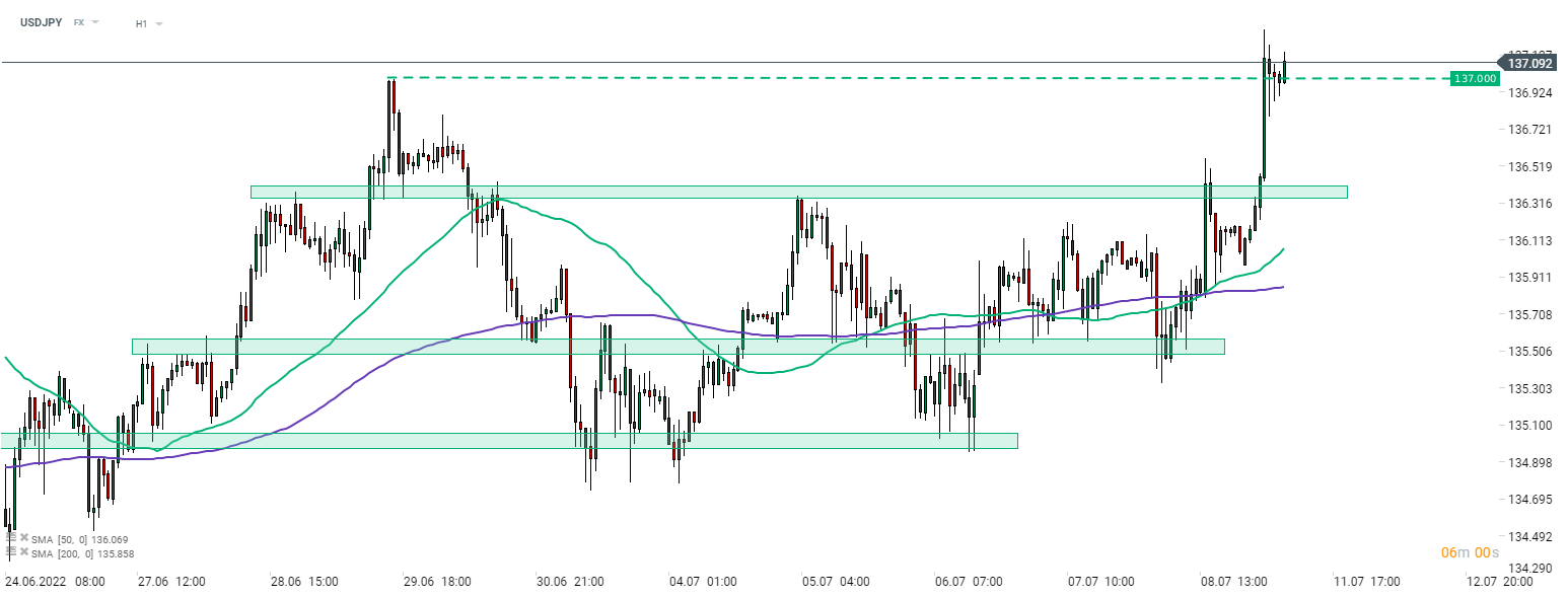 USDJPY tăng vọt trên 137 và chạm ngưỡng cao nhất kể từ 1998 nhờ đồng USD tăng giá tốt hơn do mức độ lo ngại rủi ro gia tăng. Nguồn: xStation5