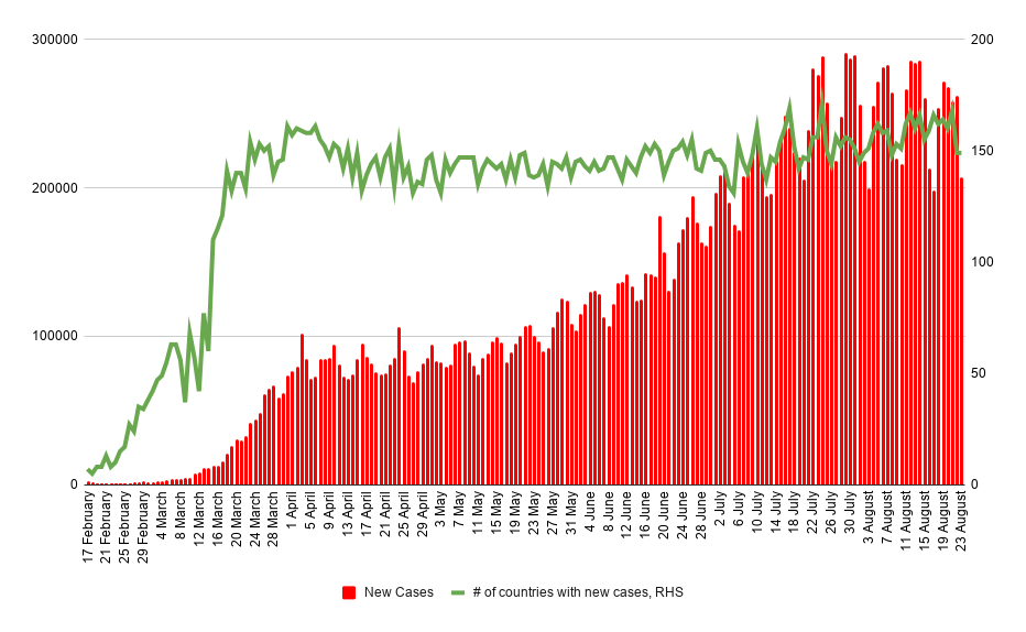 Tổng số ca nhiễm Corona được xác nhận đã tăng lên trên 23,5 triệu. Hơn 16 triệu người đã hồi phục trong khi 812 nghìn người chết
