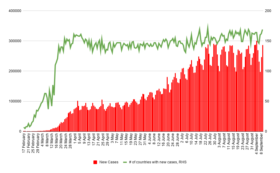 Hơn 280.000 ca nhiễm Corona mới đã được báo cáo trong ngày hôm qua. Nguồn: worldometers, XTB