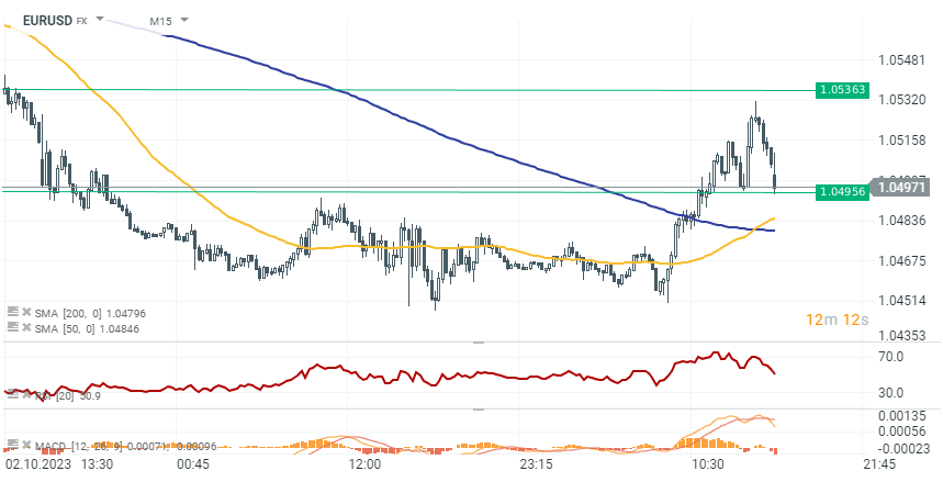 EURUSD sụt giảm sau khi công bố. Sức mạnh liên tục của lĩnh vực dịch vụ Hoa Kỳ xác nhận rằng nền kinh tế nước này vẫn mạnh mẽ, được hỗ trợ thêm bởi dữ liệu JOLTS cao của ngày hôm qua.
