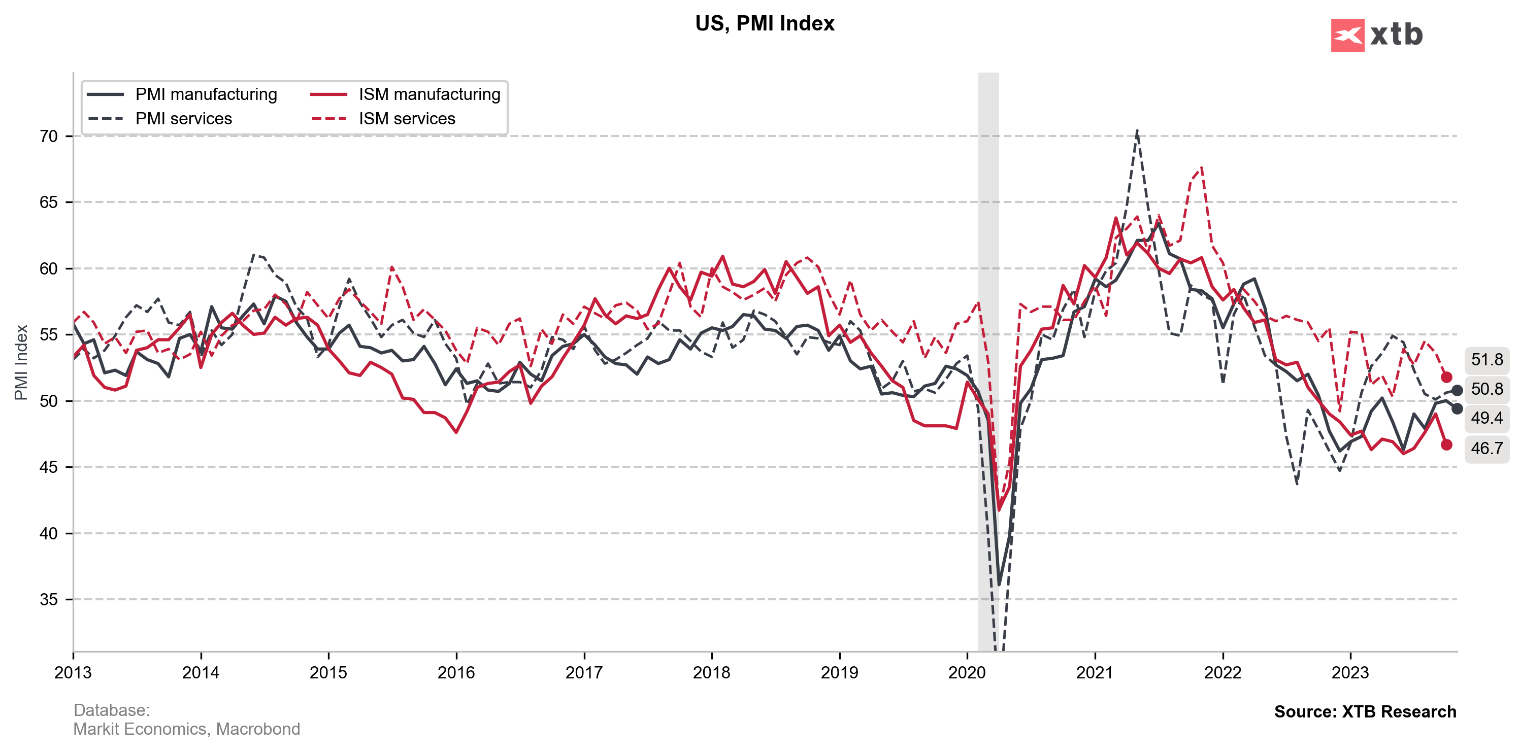 Một loạt chỉ số PMI sơ bộ tháng 11 của Hoa Kỳ đã được công bố hôm nay lúc 21:45 giờ VN. Dữ liệu PMI tháng 11 của Hoa Kỳ được công bố muộn hơn vài ngày so với dữ liệu của Châu Âu do Hoa Kỳ đang nghỉ lễ Tạ Ơn vào đầu tuần này. Dữ liệu dự kiến sẽ cho thấy sự suy yếu trong các lĩnh vực sản xuất và dịch vụ, với chỉ số sản xuất giảm xuống dưới ngưỡng mở rộng - thu hẹp 50 điểm.