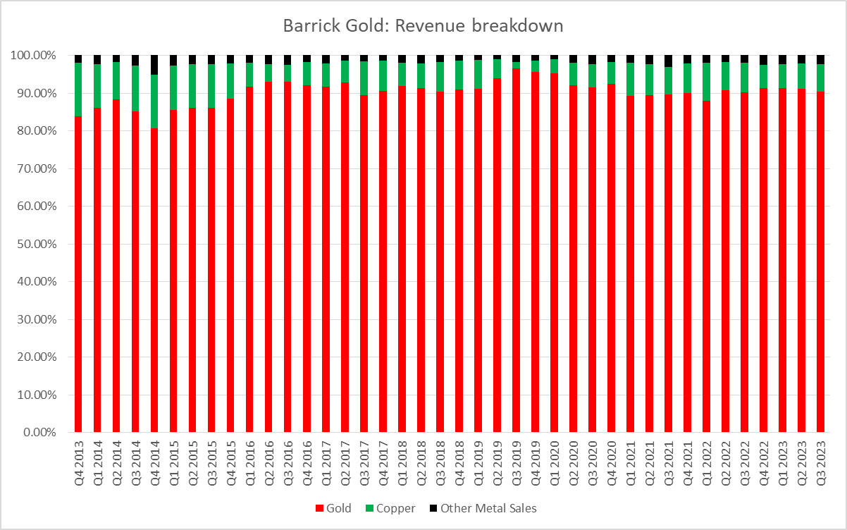 Ngoài việc khai thác vàng, Barrick Gold còn tham gia vào lĩnh vực khai thác đồng. Điều này không có gì bất ngờ vì vàng thường được khai thác cùng với các kim loại cơ bản. Tuy nhiên, đồng chỉ chiếm chưa đến 10% doanh thu quý của công ty, nhưng điều này có thể sẽ thay đổi trong thời gian tới.