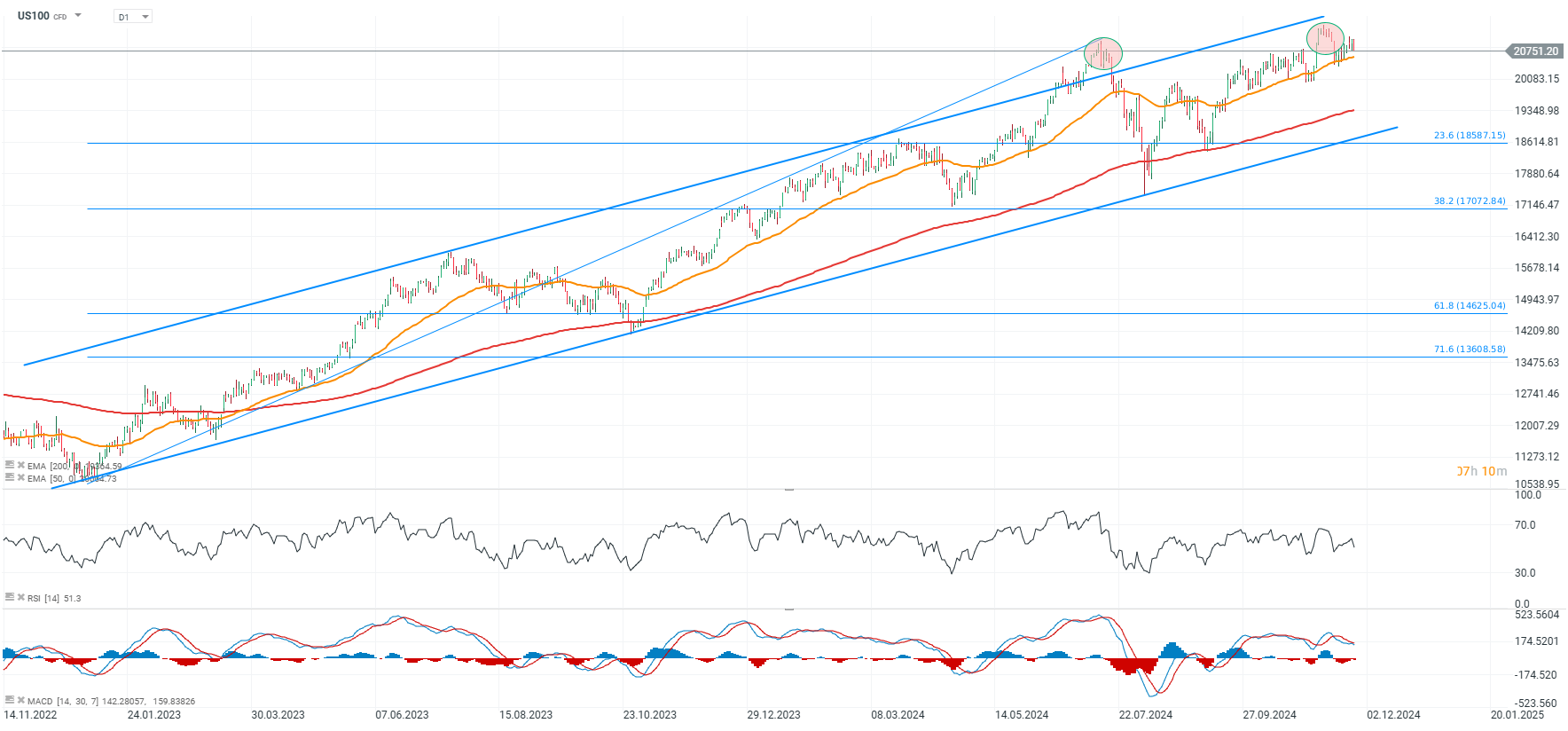 Biểu đồ chỉ số US100 (khung thời gian D1)