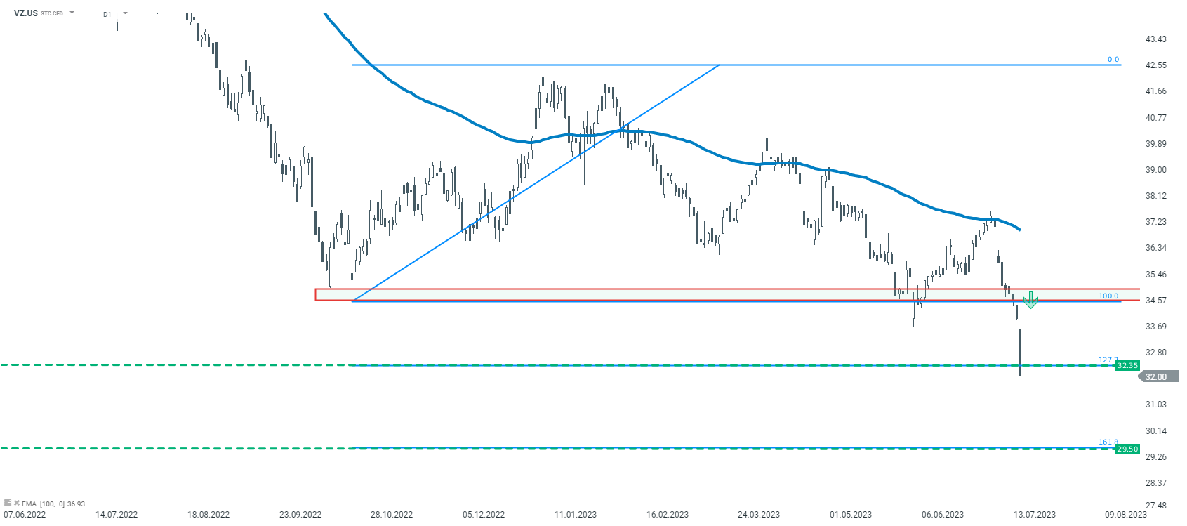 Cổ phiếu Verizon đã phản ứng đột ngột với báo cáo của WSJ. Nguồn: xStation5