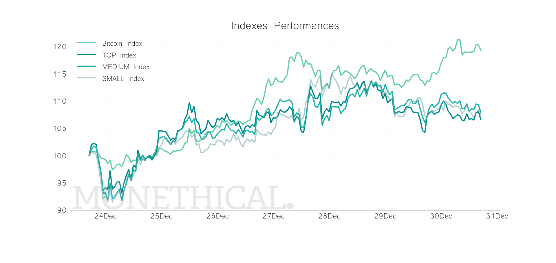 Vài ngày qua là là những ngày rất tích cực đối với Bitcoin, nó đang tiến đến mức tâm lý $30.000. Altcoin cũng đang hoạt động tốt, tuy nhiên không thể giữ được tốc độ của BTC. Sự thống trị thị trường của Bitcoin đã tăng lên mức thống trị thị trường 70,6%. Tổng vốn hóa thị trường của Bitcoin hiện vượt quá 541 tỷ đô la khi toàn bộ thị trường tiền điện tử chạm mức 767 đô la và đang dần tiến đến mức cao nhất mọi thời đại là 827 tỷ đô la. Nguồn: Monethical