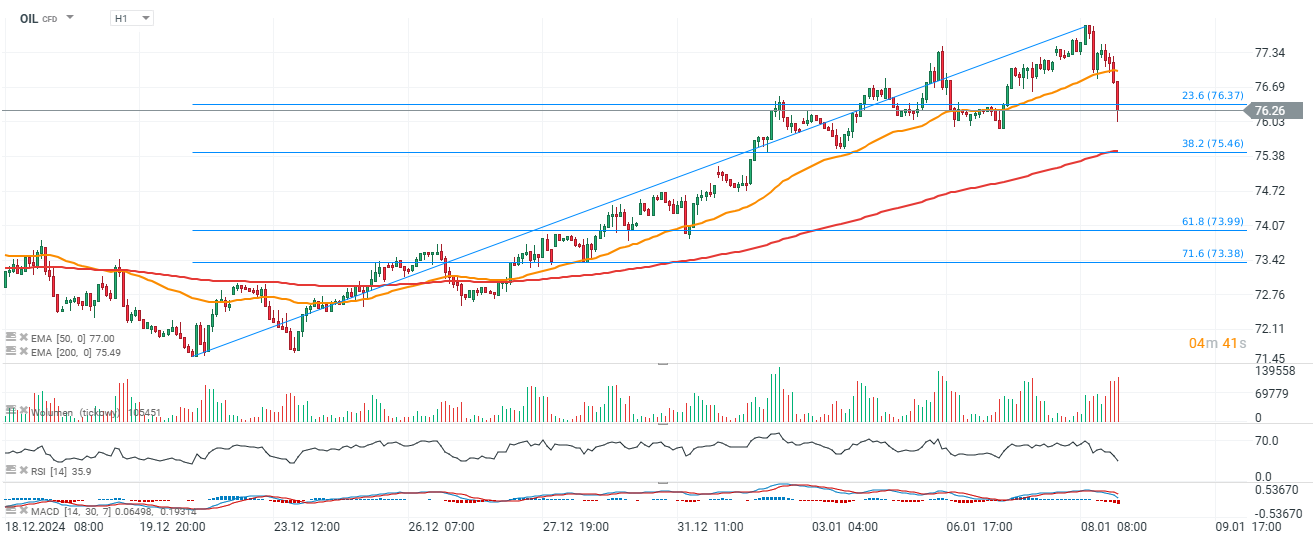 Bên cạnh đó, báo cáo tồn kho dầu thô EIA của Mỹ, cùng với dữ liệu kinh tế vĩ mô yếu kém hơn dự kiến của Trung Quốc, đã khiến cho giá dầu giảm giá trong phiên ngày hôm nay. Mặt khác, Đài Loan đã thông báo về việc thành lập quân đoàn nước ngoài giữa lúc áp lực quân sự từ Trung Quốc gia tăng trên eo biển Đài Loan. Mặc dù có những sự hạ nhiệt ở Trung Đông, nhưng căng thẳng địa chính trị vẫn có thể hỗ trợ giá dầu, ít nhất là trong trung và dài hạn, hạn chế khả năng giảm mạnh.
