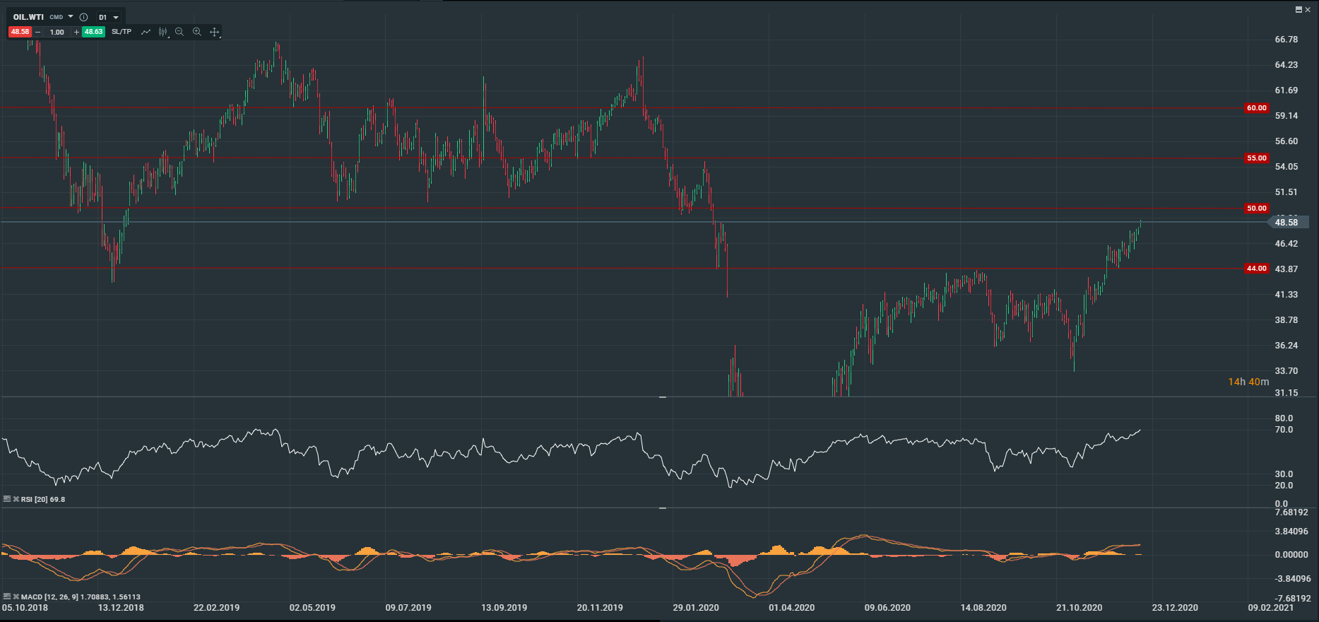 Sau khi thông tin về mức tồn kho dầu thô của Hoa Kỳ được công bố (Giảm 3.1 triệu thùng, so với mức dự báo chỉ 1.9 triệu thùng), đi kèm với nhu cầu tăng cao từ châu Á, giá dầu WTI ngày hôm nay đã lập đỉnh cao nhất trong 9 tháng và hiện giao dịch tại tỷ giá 48.5$/thùng dầu.