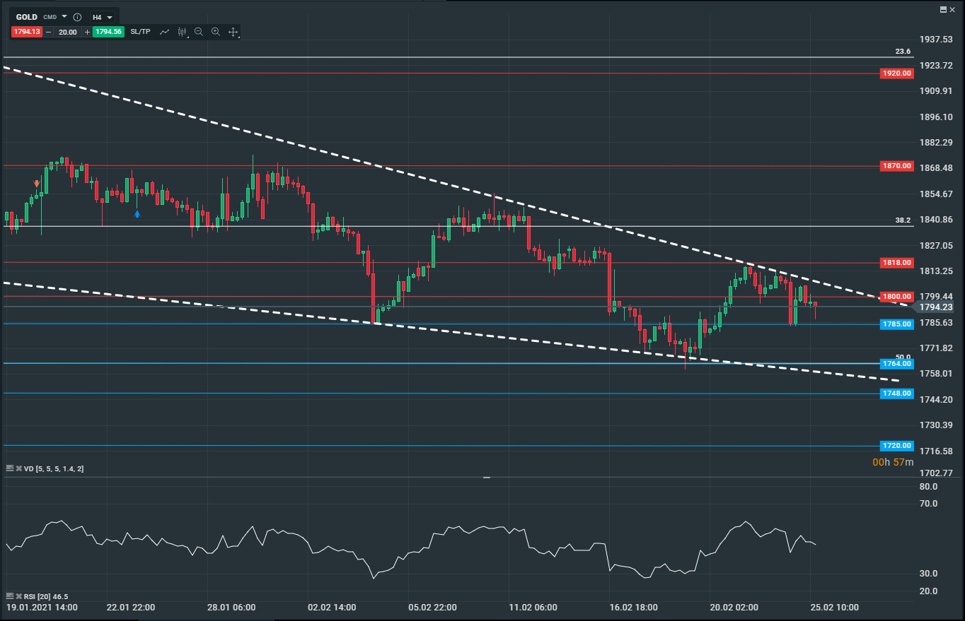 Giá vàng vẫn giao động quanh mức 1800 và 1785, không có cú bứt phá ngoạn mục nào. Hợp đồng vàng tương lai hiện đang chịu áp lực trong phiên giao dịch ngày thứ Năm khi lợi tức Kho bạc Hoa Kỳ hiện ở gần đỉnh cao trong vòng một năm trở lại đây, làm giảm sức hấp dẫn của tài sản được định giá bởi USD. Mặc dù USD đã yếu đi do các ảnh hưởng từ giá dầu và cơn bão tuyết tại Texas, Cục Dự trữ Liên bang Hoa Kỳ đã cam kết sẽ đưa ra một chính sách phù hợp và kỳ vọng nhiều cú kích thích tài khóa từ chính phủ nhằm hạn chế tổn thất.
