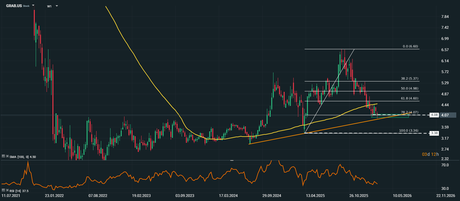 Biểu đồ cổ phiếu Grab, khung thời gian W1. Nguồn: xStation5