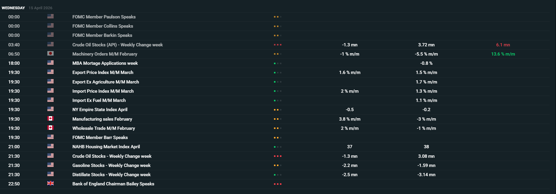 Hôm nay, lịch vĩ mô khá đa dạng - mùa báo cáo kết quả kinh doanh Q1 2026 đang bắt đầu, đồng thời thị trường cũng sẽ lắng nghe các phát biểu từ những quan chức ngân hàng trung ương quan trọng.