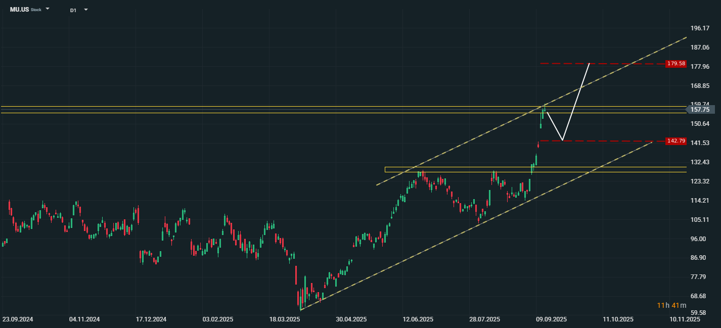 Cổ phiếu Micron Technology (MU) đã tăng hơn 20% trong tuần qua. Tâm lý tích cực này xuất phát từ dự báo kết quả kinh doanh quý IV tài khóa sẽ vượt xa kỳ vọng thị trường, cùng với triển vọng dài hạn sáng sủa nhờ sự bùng nổ nhu cầu bộ nhớ dành cho trí tuệ nhân tạo (AI).