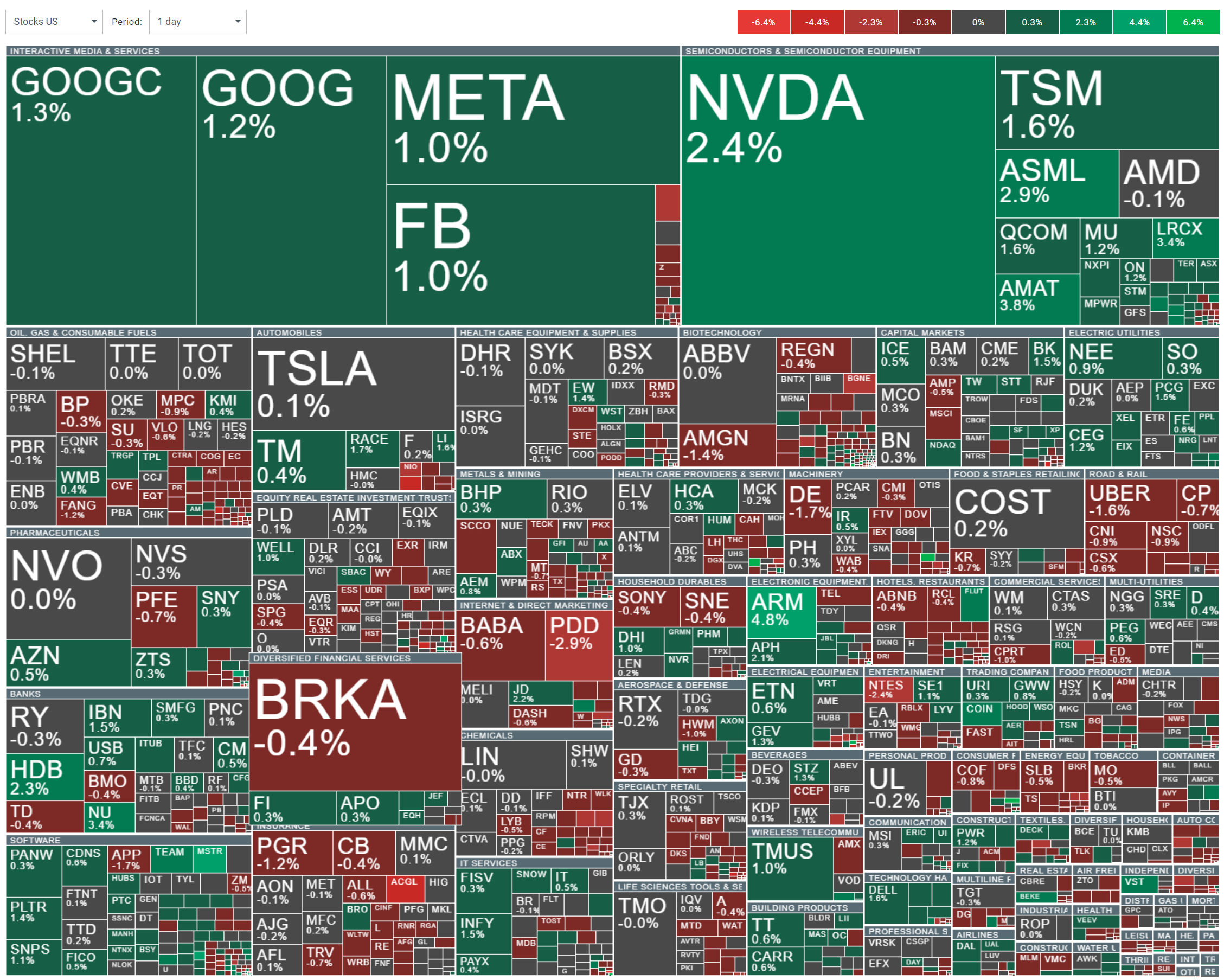 Biến động của các cổ phiếu trên phố Wall. Nguồn: xStation