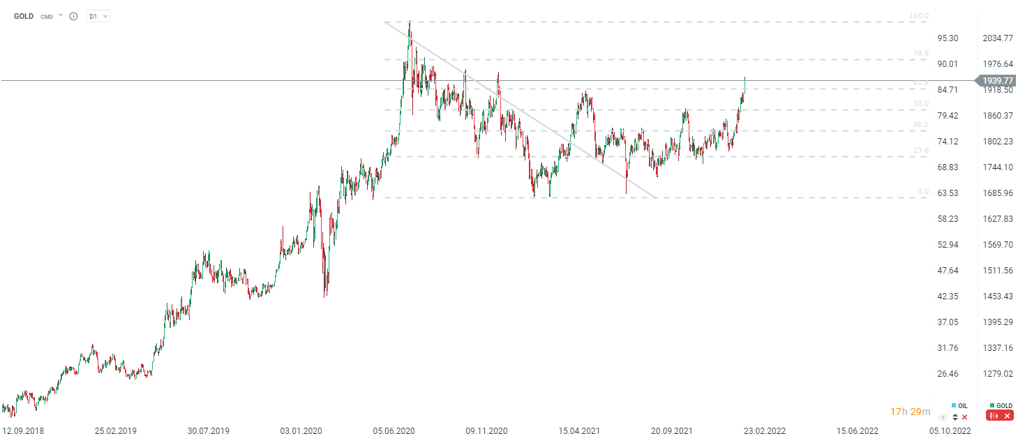 Vàng kiểm tra khu vực 1,940 USD/ounce. Nguồn: xStation5