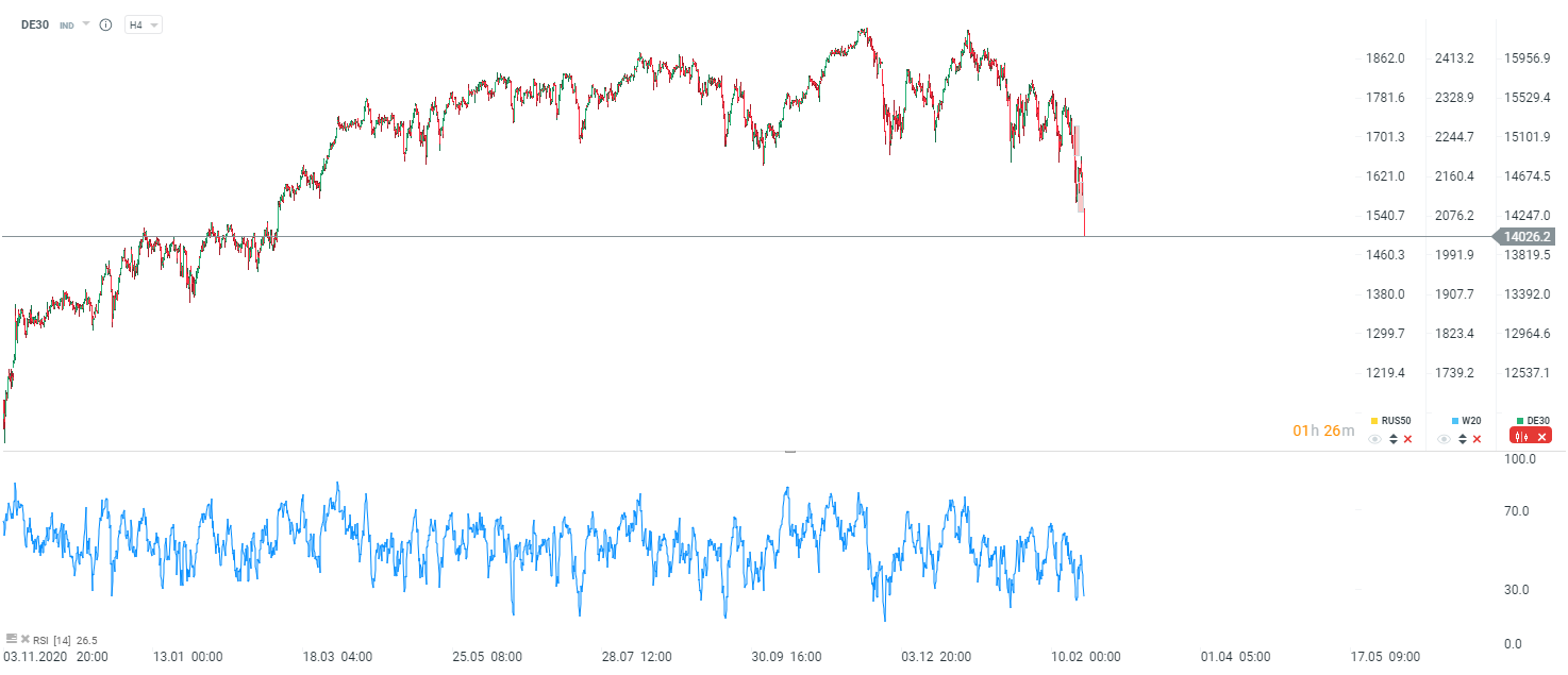 Chỉ số DAX chạm mức thấp nhất kể từ tháng 3 năm 2021. Nguồn: xStation5