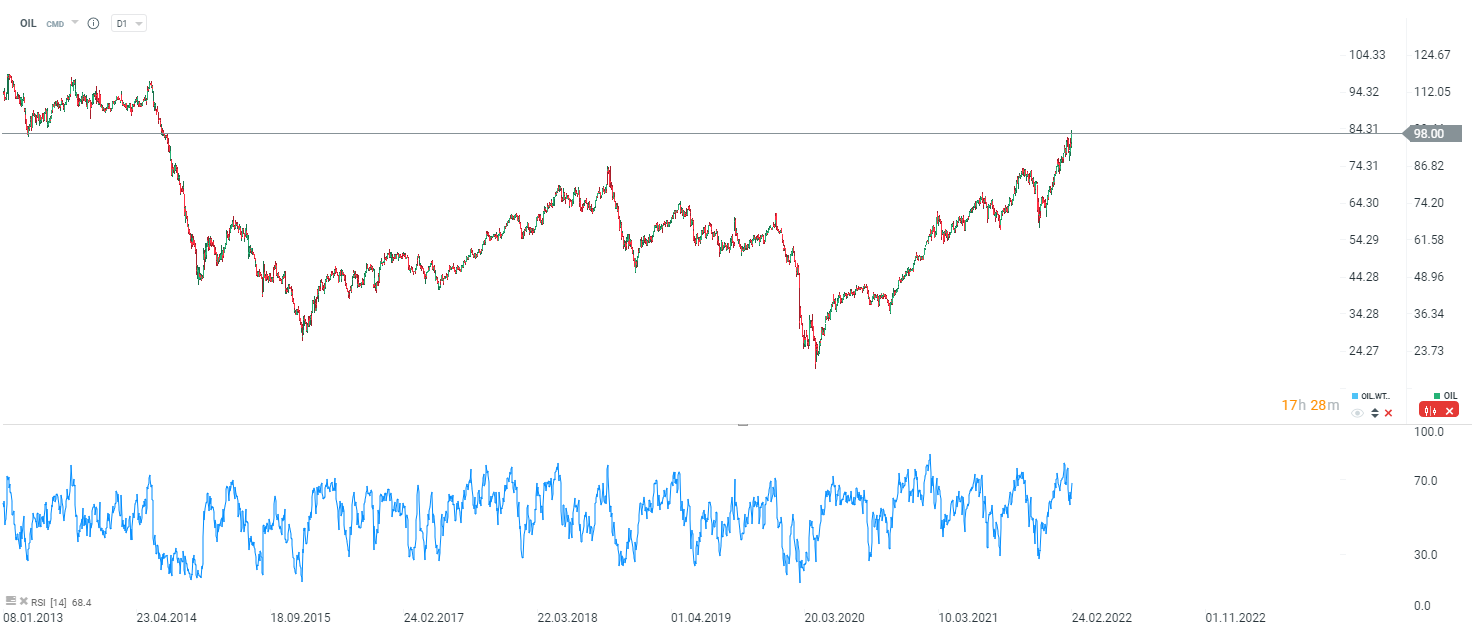 Dầu Brent thử nghiệm khu vực giá 100 USD/thùng. Nguồn: xStation5